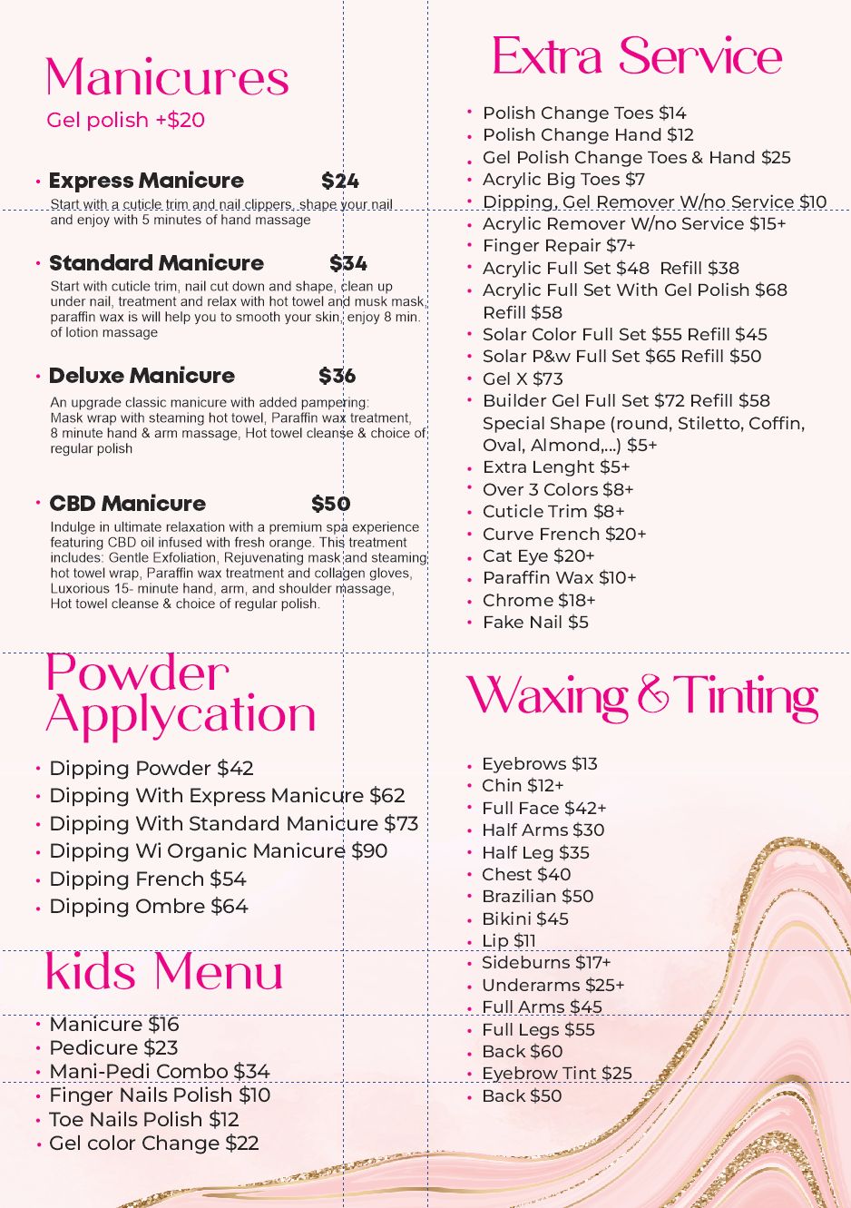• Acrylic Full Set with Gel Polish : $68 Refill : $58
