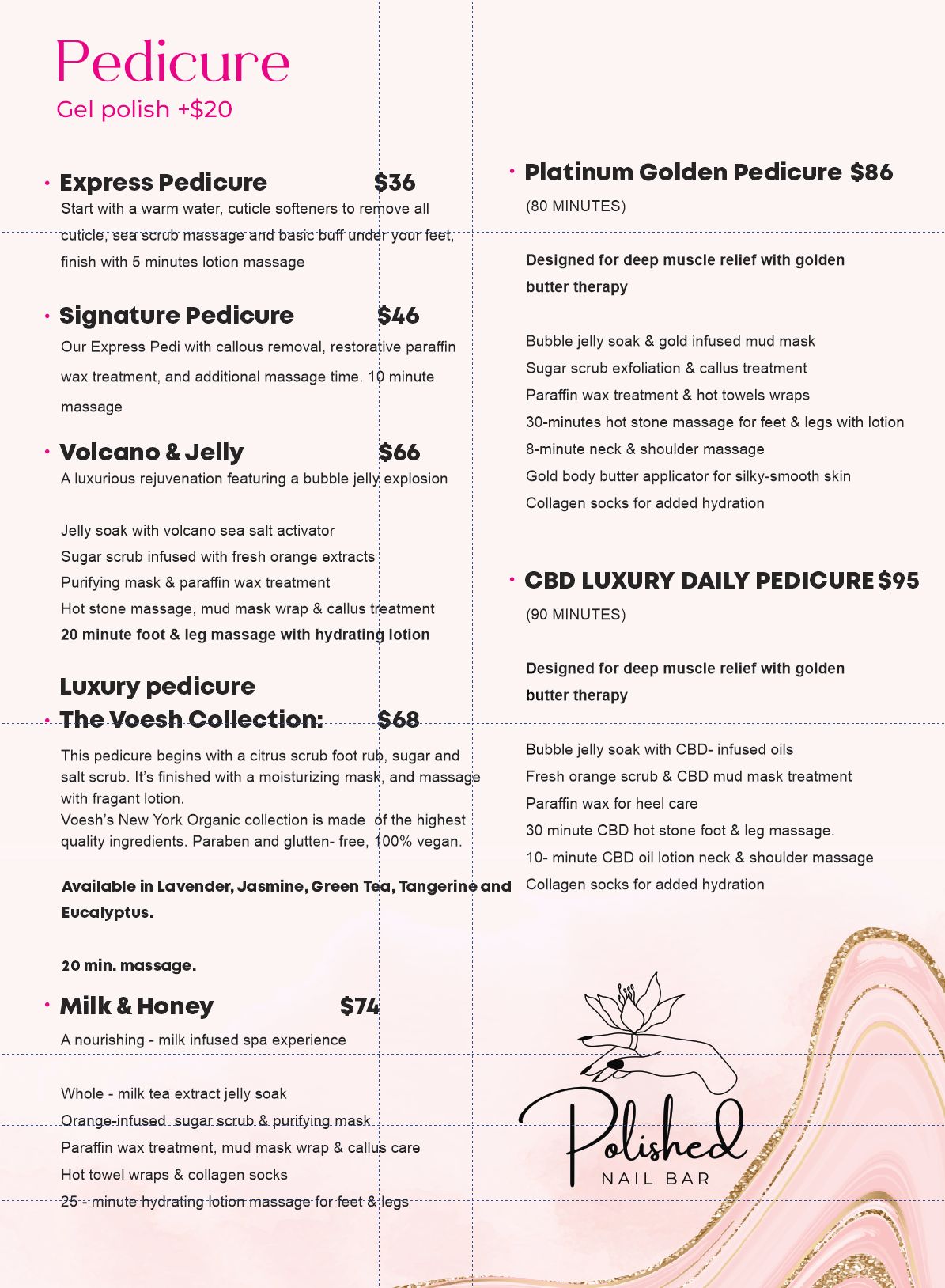 At Polished Nail Bar, every service is designed with your beauty and comfort in mind. Whether it’s a refreshing manicure, a soothing pedicure, or a bold new nail art design, we’re here to make your vision shine.